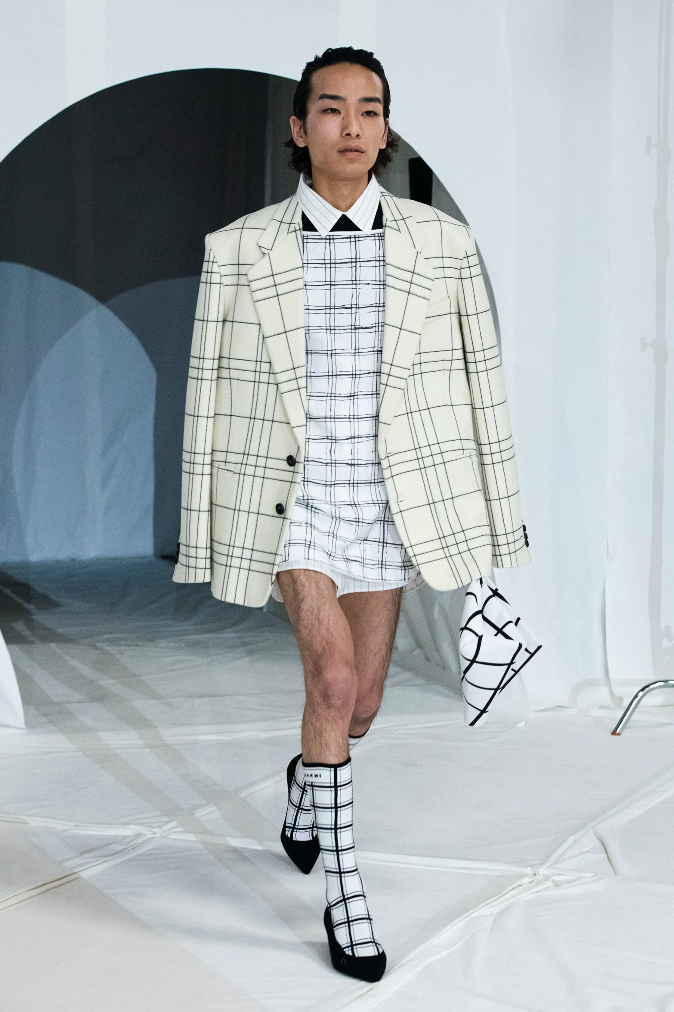 Within seconds of look two—a bright yellow check blazer with a lighter yellow check dress underneath and black and white check socks in white pointed-toe slingbacks—stepping foot on the runway, it was clear to me that this collection displayed the film’s modern-day wardrobe. You could ask just about anyone what they picture when they think of the 1995 film starring Alicia Silverstone, and they’d all say, “Cher in her yellow plaid blazer and pleated mini skirt.” Well… maybe not those words exactly, but you get the gist. And therefore, I’m surprised nobody mentioned Clueless when referencing the fashion show held on February 1 in Tokyo.